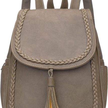 Fashion Small Synthetic Leather Backpack Purse For Women and Ladies with Tassel (Khaki)