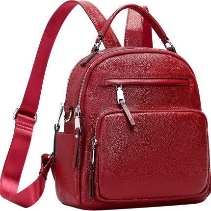 Genuine Leather Backpack for Women Small Convertible Backpack Purse Ladies Shoulder Bag 4 in 1 to Carry