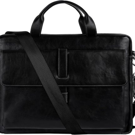 Leather Briefcase, 15 Inch Laptop Bag, Messenger Shoulder Bag, Work Bag, Crossbody Handbag for Business Travel, -black, 40cm(W) x 7cm(D) x30cm(H)