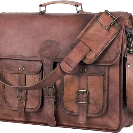Leather Laptop Bag, Leather Messenger for Men and Women, Briefcases for Men, A Perfect Satchel Can Be Used for Laptop Bag and Work, Brown – Style 1, 15″ Inches