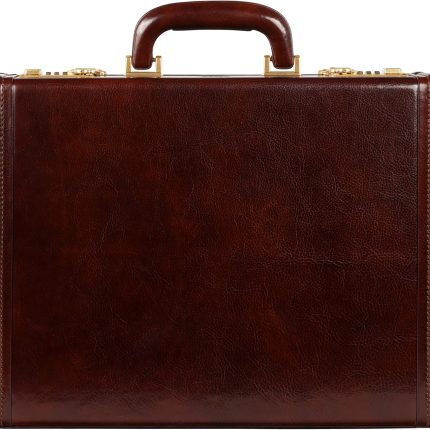 Leather Attache Case – Full Grain Italian Leather Briefcase – Laptop Bag up to 15” – Hard Case with Lock