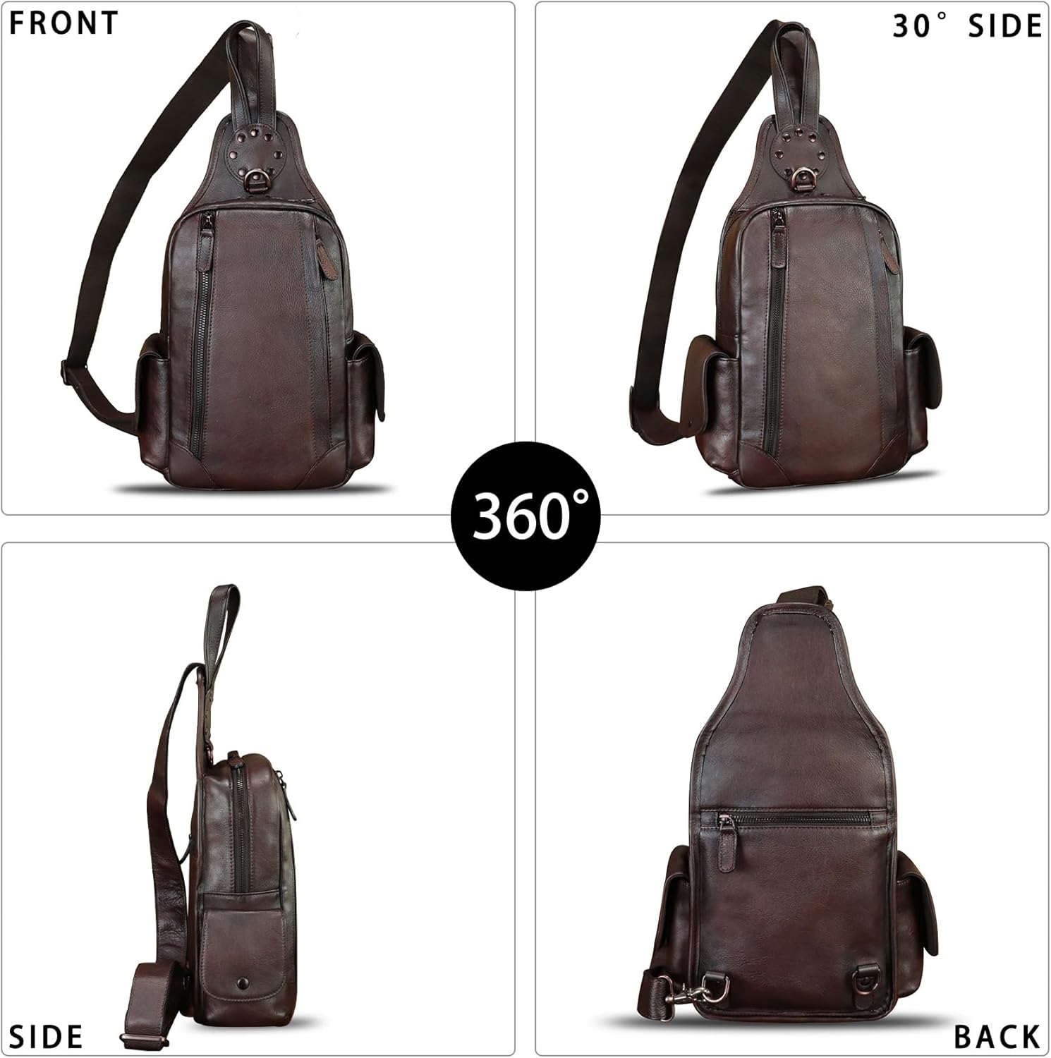 Genuine Leather Silng Bag for Men and Women Vintage Leather Sling Backpack Chest Purse Crossbody Bag