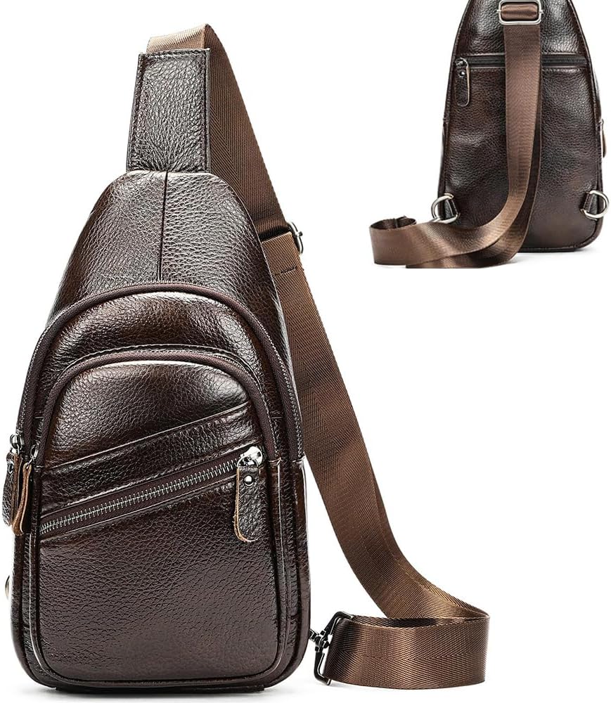 Genuine Leather Sling Bag Crossbody Men Casual Women Travel Daypacks Chest Bag Shoulder Backpack, Brown