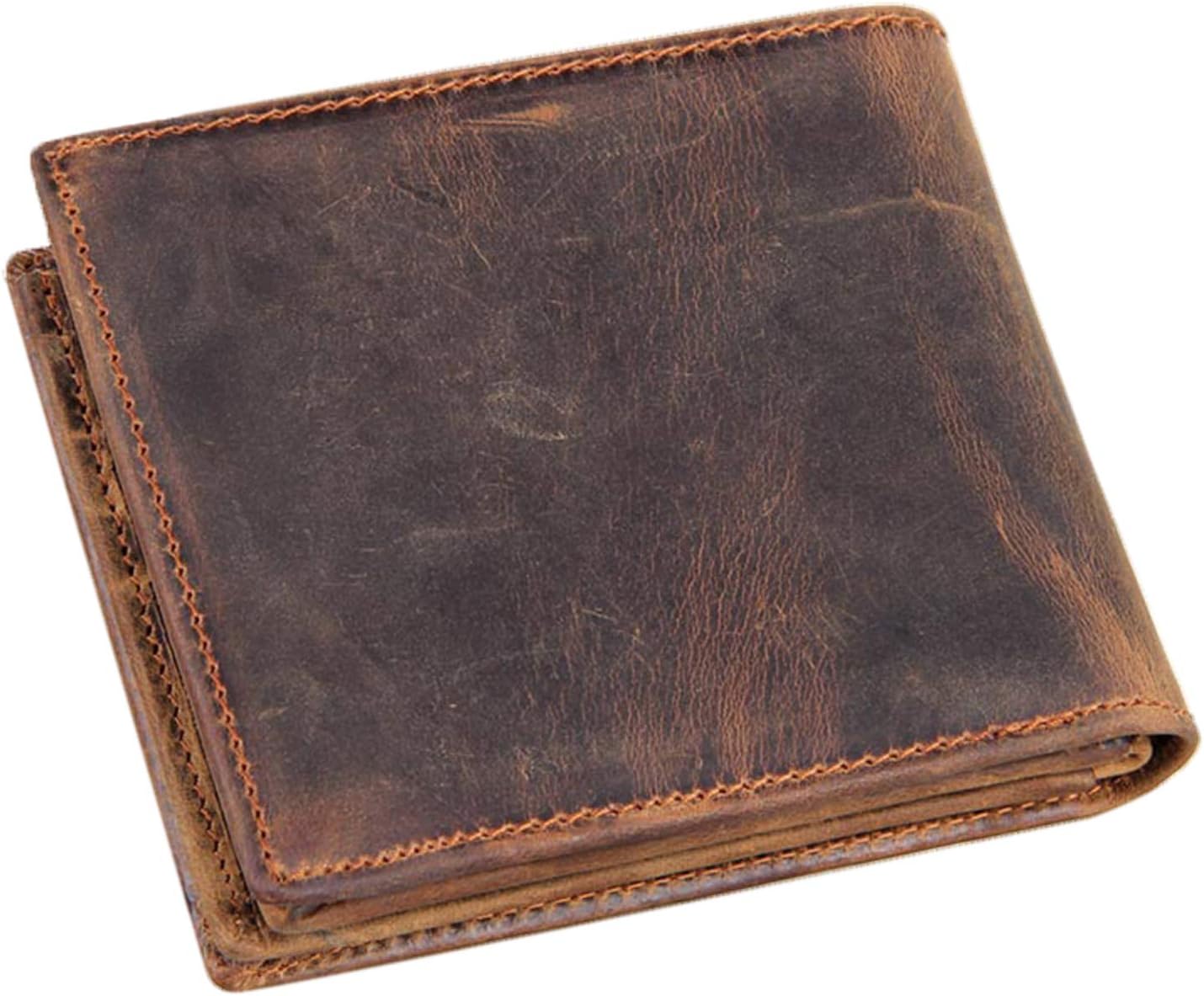 Genuine Leather Wallets for Men-Handmade Vintage Italian Distressed Large Bifold Men’s Wallet with RFID Blocking ID Window and Zipper