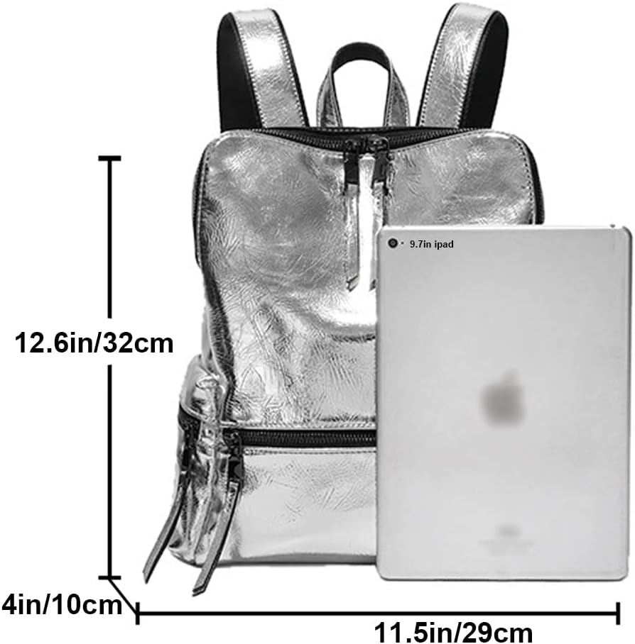 Stylish Backpacks for Women Shiny Soft Leather Backpack with Top Handle Zipper Purse Shoulder Bags Travel Daypack Casual Waterproof Travel Bags-Sliver